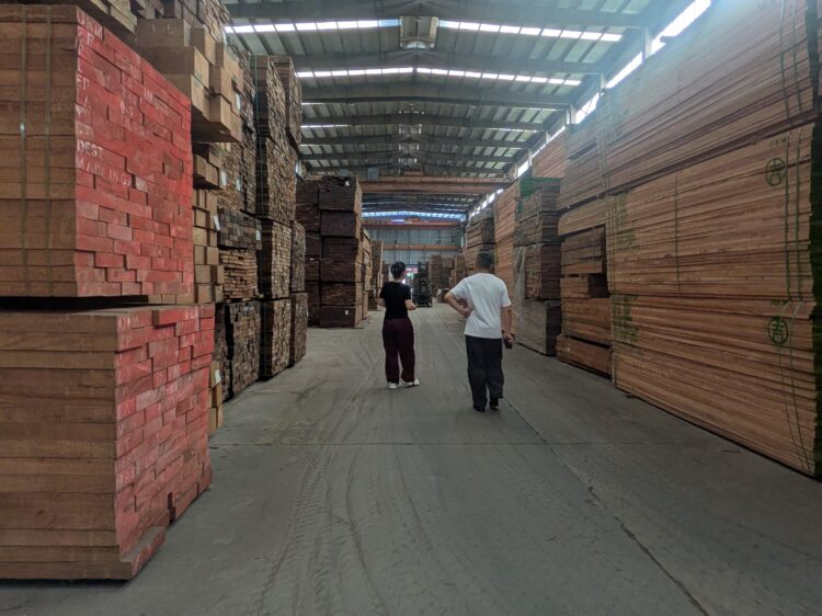 中国出張にて中国のツキ板や染色単板、アフリカ材の板や原木など沢山の工場を訪問して来ました。