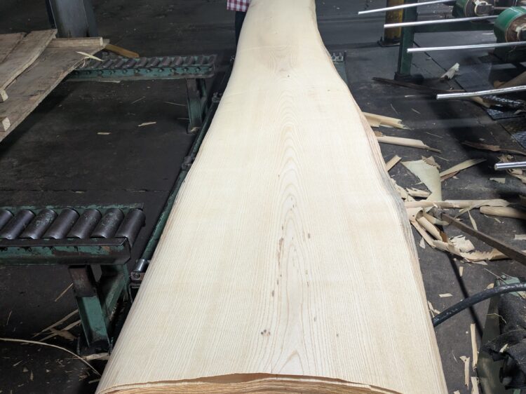 アフリカ材の原木も輸出規制が厳しい為、大きな原木をチョイスして輸入している様です。